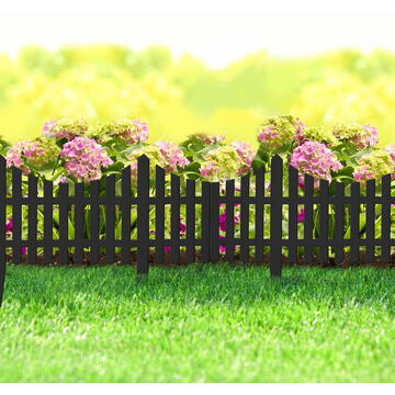 Gardulet din material plastic, cu infigere in sol, ideal pt. delimitarea straturilor de flori, a trotuarelor de gradina, sau al gazonului. Gard din material plastic solid, culoare neagra Aspect pretentios, estetic Usor de asamblat Flexibil, instalabil chiar si in forma de cerc Dimensiuni: 60 x 23 cm - Se vinde la bucata