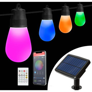 Garden of Eden Șir lumini solare inteligente - LED RGBIC 15 buc - 6,5 m - bluetooth