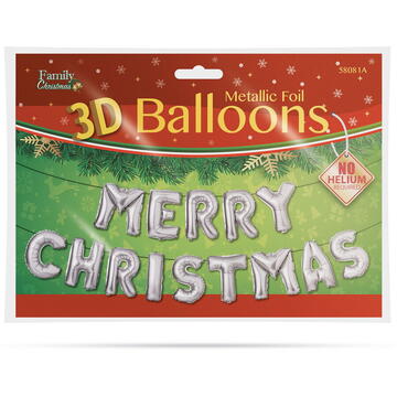 Pe măsură ce Sărbătorile se apropie, ne vom decora și apartamentul într-o atmosferă de Crăciun! Baloanele decorative sunt o alegere excelentă în acest scop, dacă doriți un design modern de Crăciun cu aspect elegant. Luminile strălucitoare de Crăciun reflectate de pe folia strălucitoare sunt într-adevăr feerice.     Cu inscripţie "Merry Christmas"     Simplu de instalat     Aspectuos în orice încăpere Material:        Folie mat. plastic Culoare:         Culoare: argint Dimensiunea literelor:             cca. 10 x 18 cm