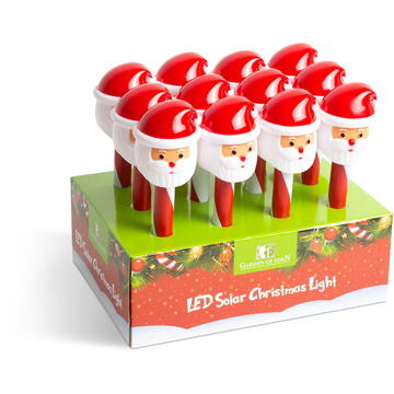 Conferiţi aspect de sărbătoare grădinii Dvs. cu lămpi solare. Folosiţi-le ca lumină de ghidare, sau ca decoraţie în aer liber. Cu ajutorul ţepuşei de fixare, amplasarea este cât se poate de simplă. La lăsarea crepusculului, lampa se aprinde, dimineaţa însă, lampa se stinge automat. În timpul zilei, panoul solar transformă lumina în energie electrică, ce va fi acumulată în acumulator. Instalare simplă, fără cabluri Uşor de asamblat Carcasă rezistentă la stropii de apă Aprindere automată la lăsarea crepusculului Iluminare de durată lungă, datorită acumulatoarelor reîncărcabile de la panoul solar Cu întrerupător ON/OFF 1 buc. LED RGB Sursa de lumină: LED RGB Sursa de energie: Acumulator AAA, 1,2V, 200 mAh Acumulator Ni-MH AAA Material: Mat. plastic şi metal Dimensiuni: 6,5 x 6,5 x 33,5 cm