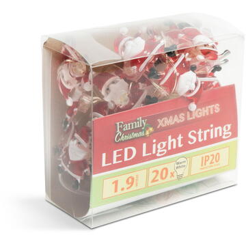 Descriere Șir de lumini LED - formă de Moș Crăciun - 2,2 metri - 20 LEDuri - alb cald - 2 x AA de la Generic