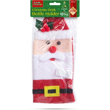 Îmbracă-ți cadourile oferite de Crăciun într-o ținută cu stil. Cu acest cadou, sticlele de băutură vor fi învelite în husa din poliester cu model de Crăciun și legați fundița de gâtul sticlei cu banda adezivă furnizată! Textură plăcută Poliester moale Model vesel de Crăciun Dimensiune: 27 x 12 cm Diametrul gâtului sticlei: max. Ø32 mm Design: Moș Crăciun Material: Polyester Greutate: ~25 g