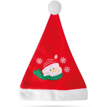 Costumului de Moș nu trebuie să-i lipsească niciodată căciula roșie. Material confortabil Cu decor om de zăpadă Culoare: Roșu / Alb Dimensiune: 27 x 39 cm Material: Textil Greutate: ~30 g