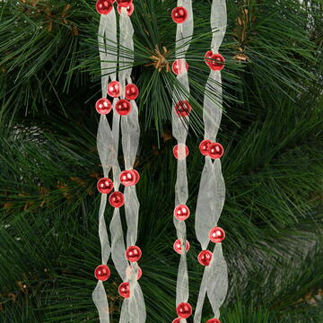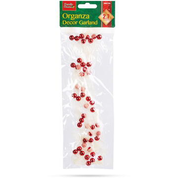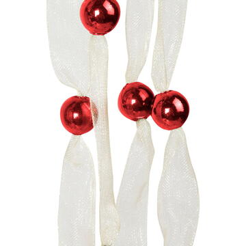 Decorează-ți casa și bradul de Crăciun cu această ghirlandă. Mărgelele strălucitoare de pe panglica din organza creează o atmosferă intimă în casa ta. Ghirlanda lungă de 2,7 metri arată bine și pe pomii mari de Crăciun. Culoare strălucitoare, roșie Suprafață lucioasă Poate fi folosit pe brazi de Crăciun, ghirlande, decorațiuni pentru masă Lungime: 270 cm Dimensiune margele: Ø10 mm Culoare: Roșu Material: Plastic Greutate: ~23 g
