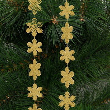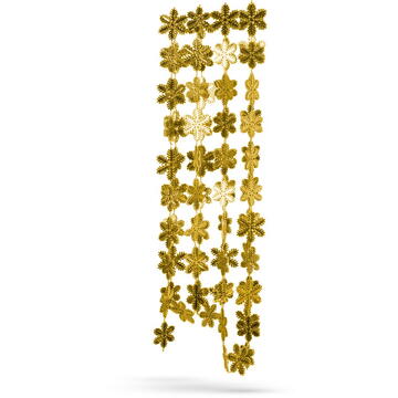 Decorează-ți casa și bradul de Crăciun cu această ghirlandă. Fulgii strălucitori de pe panglică creează o atmosferă intimă în casa ta. Ghirlanda lungă de 2,7 metri arată bine și pe pomii mari de Crăciun. Strălucirea luminilor ambientale o vor aduce cu adevărat la viață! Culoare strălucitoare Suprafață lucioasă Pentru uz interior Poate fi folosit pe brazi de Crăciun, ghirlande, decorațiuni pentru masă Lungime: 270 cm Dimensiune margele: 32 x 32 mm Culoare: Aurie Material: Plastic Greutate: 80 g
