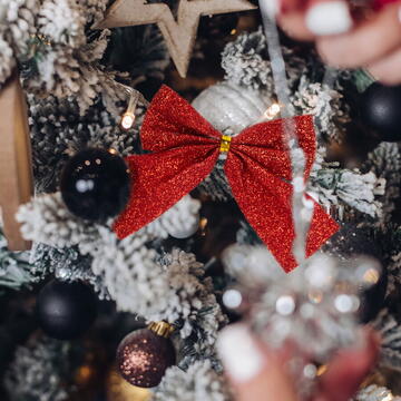 Descriere Ornament de Crăciun - set fundițe cu sclipici - roșu - 12 buc/pachet de la Generic