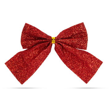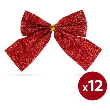 Ornament de Crăciun - set fundițe cu sclipici - roșu - 12 buc/pachet