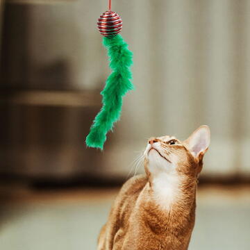 Nici animalele de companie nu trebuie lăsate în afara atmosferei de Crăciun. Această jucărie colorată pentru pisici garantat va fi preferata pisoiului tău. Pana și ornamentul strălucitor atrag interesul pisicilor iar succesul este garantat. Din frânghie solidă Roșu/alb/verde 2 tipuri Mărime: ~46 x 5 x 5 cm Culoare: Roșu/alb/verde Material: Poliester / plastic Greutate: ~22 g