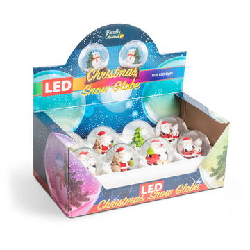 Toată familia aşteaptă Crăciunul? Iată cadoul ideal pentru copiii de toate vârstele: globul de zăpadă. O surpriză mereu plăcută.   Iluminarea LED aduce un plus încăperii și sentimentului de sărbătoare. Funcţionare economică, cu baterie. Fundița de la bază face din acest glob cadoul ideal. Gamă variată cu 4 figurine dintre care poți alege, în funcție de preferințele tale sau ale persoanei căreia îi oferi acest detaliu.   LED 1 buc. LED RGB Sursa de energie 2 Baterii LR44 incluse Material Plastic și sticlă Dimensiuni Diametru 65 mm x înălțime 85 mm Masa 280 g