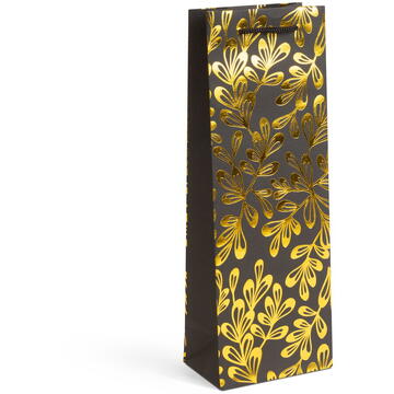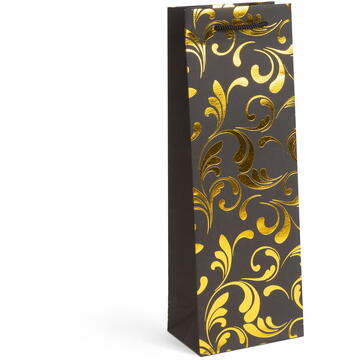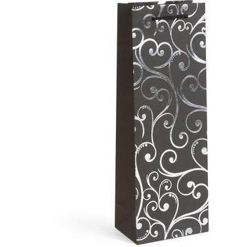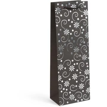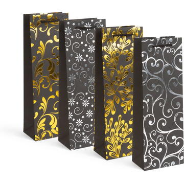 Sacoşă elegantă cu motive de Crăciun pt. băuturi cadou. Fie vin, şampanie, sau coniac, sacoşele noastre sunt un ambalaj deosebit de elegant pt. orice băutură cadou. Executat din carton rezistent, este un cadou elegant cu 4 modele.     Carton rezistent     Mâner textil     Auriu-negru / argintiu-negru Dimensiuni:    36 x 12 x 9 cm Lungime mâner:         40 cm