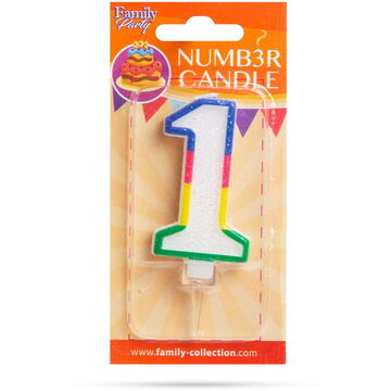 Lumânare pentru tort în forma cifrei 1. Dimensiune: 7 x 4 cm