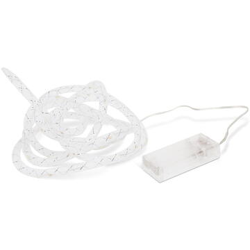 Creati atmosfera autentica de Craciun cu acest sir de lumini LED alb-cald. Tubul transparent flexibil este iluminat cu LED-uri alb cald, oferind atmosfera minunata din orice unghi de privire. Datorita tehnologiei LED cu consum redus de energie, asigura functionare indelungata si cu alimentarea de la baterii. Tehnologie LED Tub transparent Fir argintiu, sclipitor Functionare cu baterii Nu se incalzeste, foarte sigur in functionare Cu cablu subtire, transparent Cu intrerupator ON/OFF Dimensiuni tub flexibil:         200 x 10 mm (flexibil) Sursa de lumina:                     LED Nr. LED-uri:                           20 buc. Distanta dintre LED-uri:         10 cm Culoarea LED-urilor:             Alb cald Sursa de energie:                    Baterii 2 x AAA (nu este accesoriu) Lungime totala:                      2,3 m Lungimea cablului pana la suportul bateriei:          30 cm