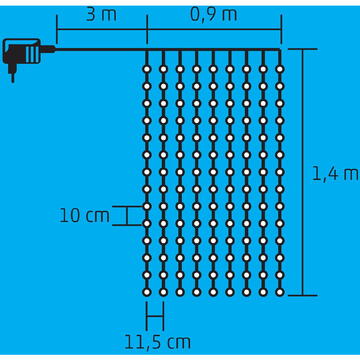 pentru interior albă, caldă 126 buc LED-uri 9 ghirlande a câte 14 LED-uri alimentare: adaptor de reţea pentru interior lungime ghirlandă: 90 cm lungime cablu de alimentare: 3 m