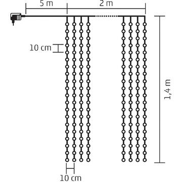 pentru interior și exterior 294 buc LED-uri albe reci, cu lumină fixă 21 ghirlande, 14 LED-uri pe ghirlandă fir alb alimentare: adaptor de alimentare IP44 pentru exterior dimensiuni: 2 x 1,4 m