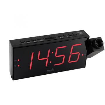 Proiecție continuă pe perete - 24 de ore, fără baterii, de pe rețea afișare ora exactă cu caractere de 1,8” / 46 mm ecran mare JUMBO cu LED roșu selecție luminozitate în trei trepte proiector LED cu funcționare continuă, poate fi reflectat format de timp 24 de ore comenzi clare, ușor de utilizat 2 timpi de deșteptare concomitente, pe zi LED de semnalizare a deșteptării active deșteptare lungă cu sunet bip-bip funcție de repetare deșteptare după 8 minute preschimbarea orei de vară/iarnă cu un singur buton memorie timp în caz de pană de curent cu 2 x baterii 1,5V (AAA), nu sunt incluse alimentare: 230 V~, cablu de conectare dimensiune: 202 x 90 x 52 mm / 370 g