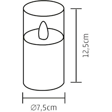 LED alb cald, intermitent, în formă de flacără cu ceară naturală buton pornit/oprit alimentare: 2 x baterii 1,5 V (AA), nu sunt incluse dimensiuni: ∅7,5 cm; 12,5 cm