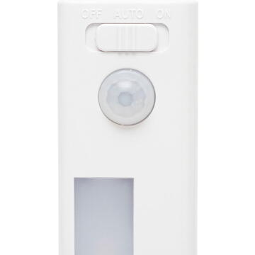 se cuplează automat atunci când este detectată o mișcare economisire de energie: nu se cuplează în medii luminoase alb rece; iluminează bine detaliile moduri de iluminare automată sau continuă senzor de mișcare PIR și senzor de lumină practic și ca lampă de mână, sau pentru acasă ideală pentru mobilier, garaj, căi de circulație poate fi fixat: cu magneți, autoadeziv furnizat cu: magnet incorporat, foaie metalică autoadezivă alimentare: baterii 4 x 1,5 V (AAA), nu sunt incluse dimensiuni: 23,6 x 3 x 1,4 cm