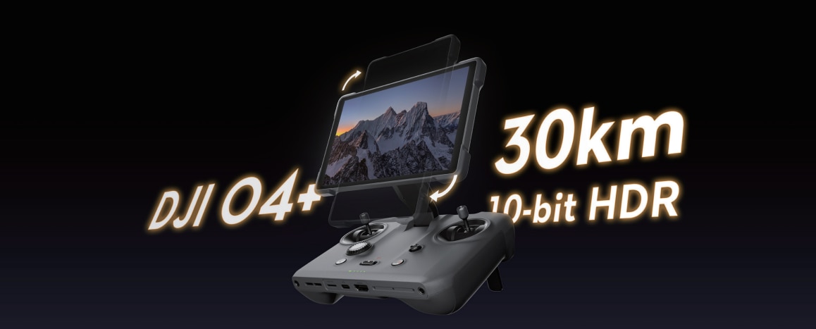 Mavic 4 Pro dispune de sistemul de transmisie DJI O4+, care utilizeaza algoritmi brevetati de ultima generatie pentru a maximiza performanta hardware. Acesta permite transmiterea de imagini HDR pe 10 biti pe raza ultra-lunga de pana la 30 km (18,6 mile) si reduce deconectarile in mediul urban.