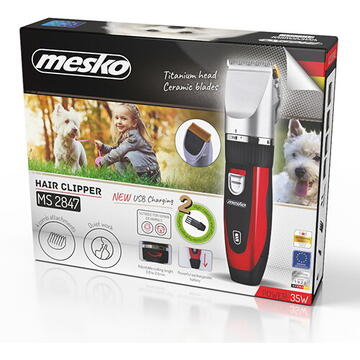 Masina de tuns pentru animale Mesko MS 2847, 35 W, USB, Multicolor