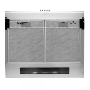 Inox Tehnologie ECO+ Lăţime 60 cm 2 motoare Filtru metalic DUBLU CASETĂ Putere 94 W(2x45 W-motor + 1x4 W-bec LED) Capacitate absorbtie 268,7-380,8 m³/h Consum anual de energie 52,9 kWh 3 trepte de absorbţie Nivel zgomot <65 dB Geam rabatabil Butoane frontale Dimensiuni nete:600x500x140 mm (LxAxH) Dimensiuni brute :647x548x182 mm (LxAxH) Greutaate neta:6.3 kg Greutate bruta: 7.3kg