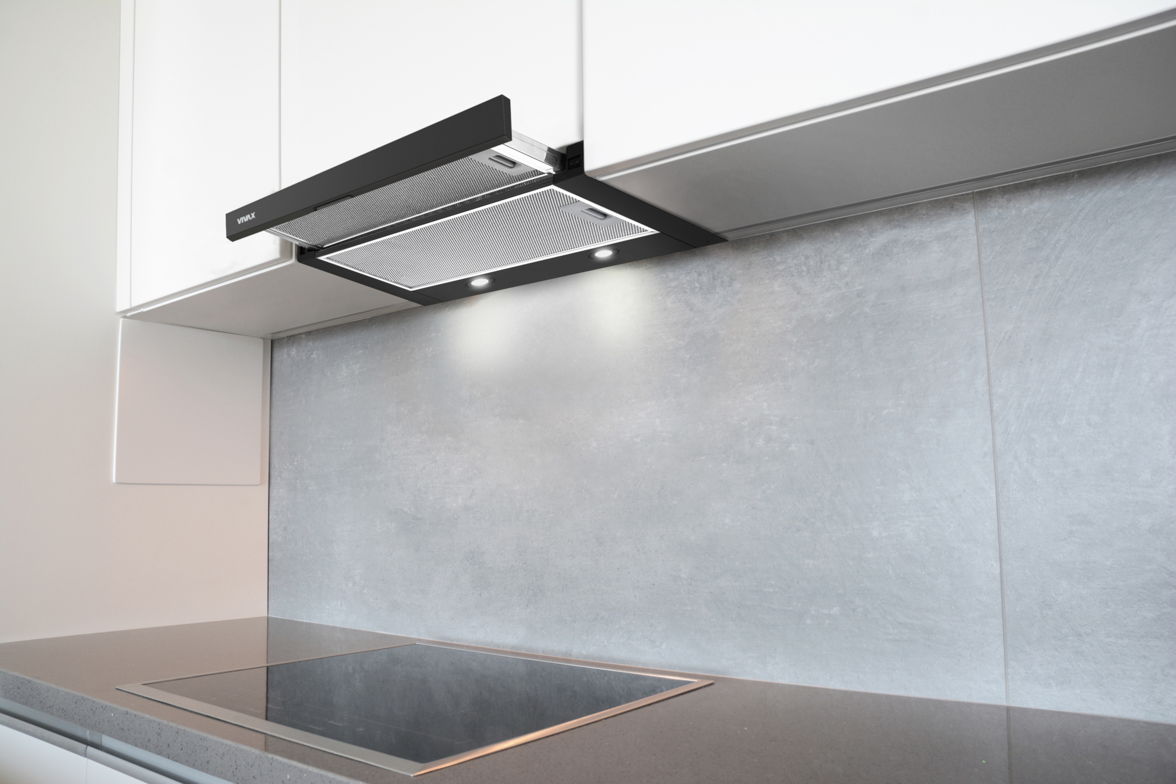 Echipată cu un motor de 100 W și două trepte de viteză, hota asigură un debit de aer de până la 281 m³/h, suficient pentru a menține aerul curat și proaspăt în zona de gătit. Funcționarea este simplă și intuitivă, iar panoul frontal telescopic permite activarea automată atunci când este extins.