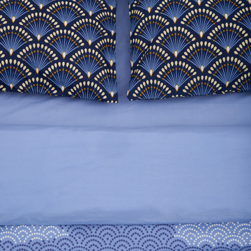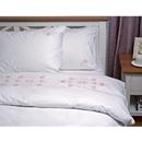 "King Size Bed Set 100% cotton, density 144 TC Set containes 2 pillow cases 50x70 cm , one flat sheet 220x240 cm and one duvet cover 200x220 cm Closing system : envelop for pillow and buttons for duvet cover "