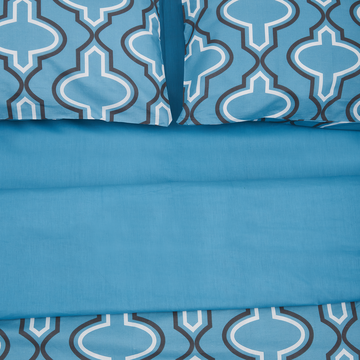 "Double Bed Set 100% cotton, density 132 TC Set containes 2 pillow cases 50x70 cm , one flat sheet 200x220 cm and one duvet cover 180x215 cm Closing system : envelop for pillow and buttons for duvet cover "