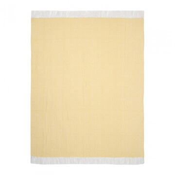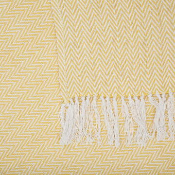 Cuvertura pled cu ciucuri Zig Material : 75% Bumbac si 25% Poliester Dimensiune : 160x200 cm . Disponibile pe galben si albastru