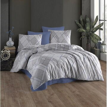 Lenjerie pat dublu Livio Studio Casa, 100% Bumbac ranforce, Cearceaf pilota 200 x 200 cm, Cearceaf pat 220 x 240 cm, 2 fete de perna 50 x 70 cm, Blue