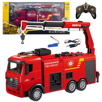 Descriere Mașină de pompieri cu macara telecomandă RC lumini apă Huina 1:18 de la HUINA