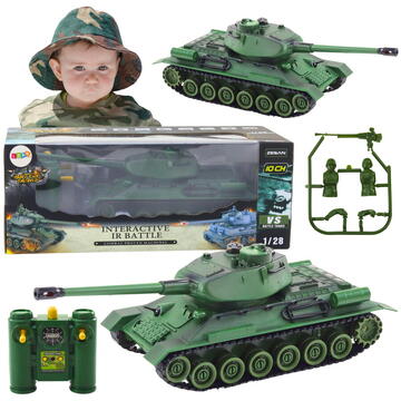 Lean Toys Tanc militar cu telecomandă RC 1:28, turelă rotativă, verde