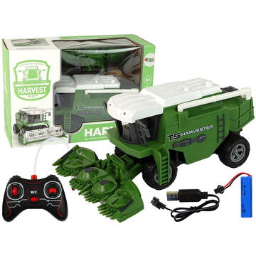 Lean Toys Mașină de recoltat agricolă cu telecomandă, lumini verzi R/C