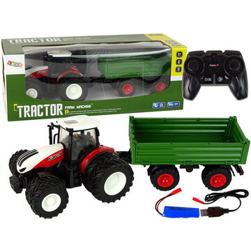 Lean Toys Tractor cu remorcă și telecomandă 1:24 Roșu Verde