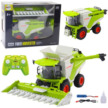 Descriere Combină de recoltat cu heder de recoltat porumb 2 în 1, telecomandă RC, efect de abur 2.4G de la Lean Toys