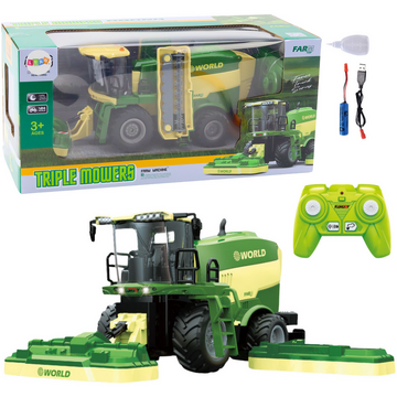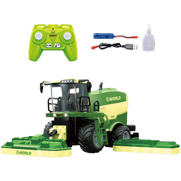 Descriere Combină de recoltat cu mașini de tuns iarba, efect de abur, telecomandă RC 2.4G de la Lean Toys