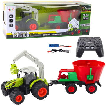 Lean Toys Tractor agricol cu ​​semănătoare și graifăr rotativ, controlat de la distanță 2.4G
