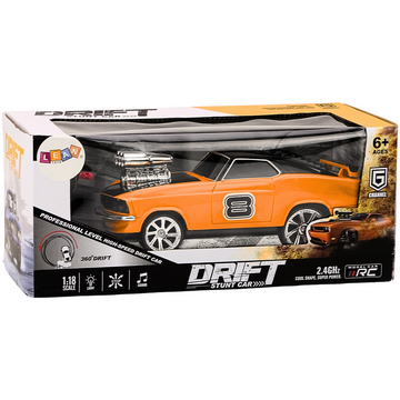 Descriere Mașină cu telecomandă 1:18 Drift 360 Lumini Sunete Portocalii de la Lean Toys