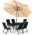 Un set de lux format din 6 scaune reglabile, o masă cu blat din sticlă și o umbrelă de soare