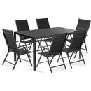 Fabricat din profile de oțel-aluminiu și acoperit cu comaxit. Masă cu sticlă călită. L 141 × P 91 × H 73 cm. Fabricat din profile de oțel-aluminiu și acoperit cu comaxit. Masă cu sticlă călită. L 141 × P 91 × H 73 cm.