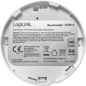 Descriere Detector de fum SC0016, Wireless, Alb de la LogiLink