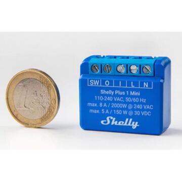 Releu inteligent Shelly BUSHP1M1, 1.2 W, 8 A, 50 m, Albastru