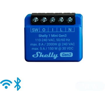 Releu inteligent Shelly BUSHP1M2, 1.2 W, 8 A, 50 m, Albastru
