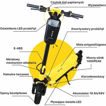 Descriere XRIDER MX10 MAX, Autonomie 85 km, Viteza maxima 20 km/h, Max. 120 kg, Galben de la Manta Multimedia Sp. z o.o.